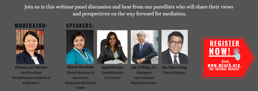 Join us in this webinar panel discussion and hear from our panellists who will share their views and perspectives on the way forward for mediation.