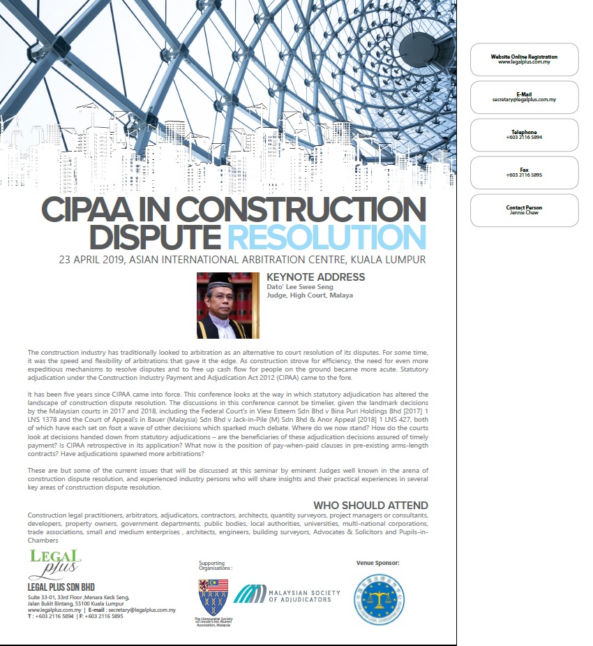 For details and registration kindly click here: userfiles/CIPAA dated 23 APR 2019 (1).pdf