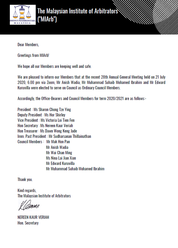 MIArb Office-Bearers and Council Members for term 2022/2023